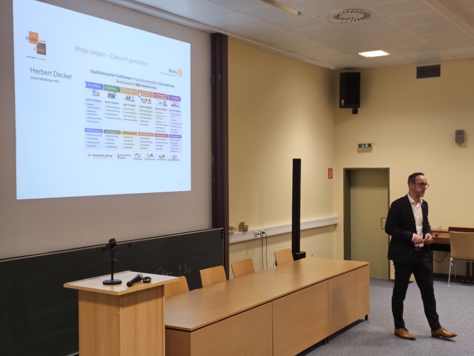 An der BHAK/BHAS Liezen fand ein abwechslungsreicher Berufsinformationstag statt, organisiert vom Rotary Club Liezen‑Rottenmann. Vertreterinnen und Vertreter aus unterschiedlichen Fachbereichen gaben den Schüler:innen spannende Einblicke in ihre beruflichen Werdegänge und Tätigkeitsfelder. Zu Gast waren Herbert Decker (MFL Liezen), Dr. Elke Wulz‑Hofstätter (Unfallchirurgie Vöcklabruck), Dr. Erich Pötsch (HBLFA Raumberg‑Gumpenstein), Dr. Walter Kreissl (Rechtsanwalt) sowie Dir. Mag. Karl‑Hans Mayr (Raiffeisenbank Region Liezen).
