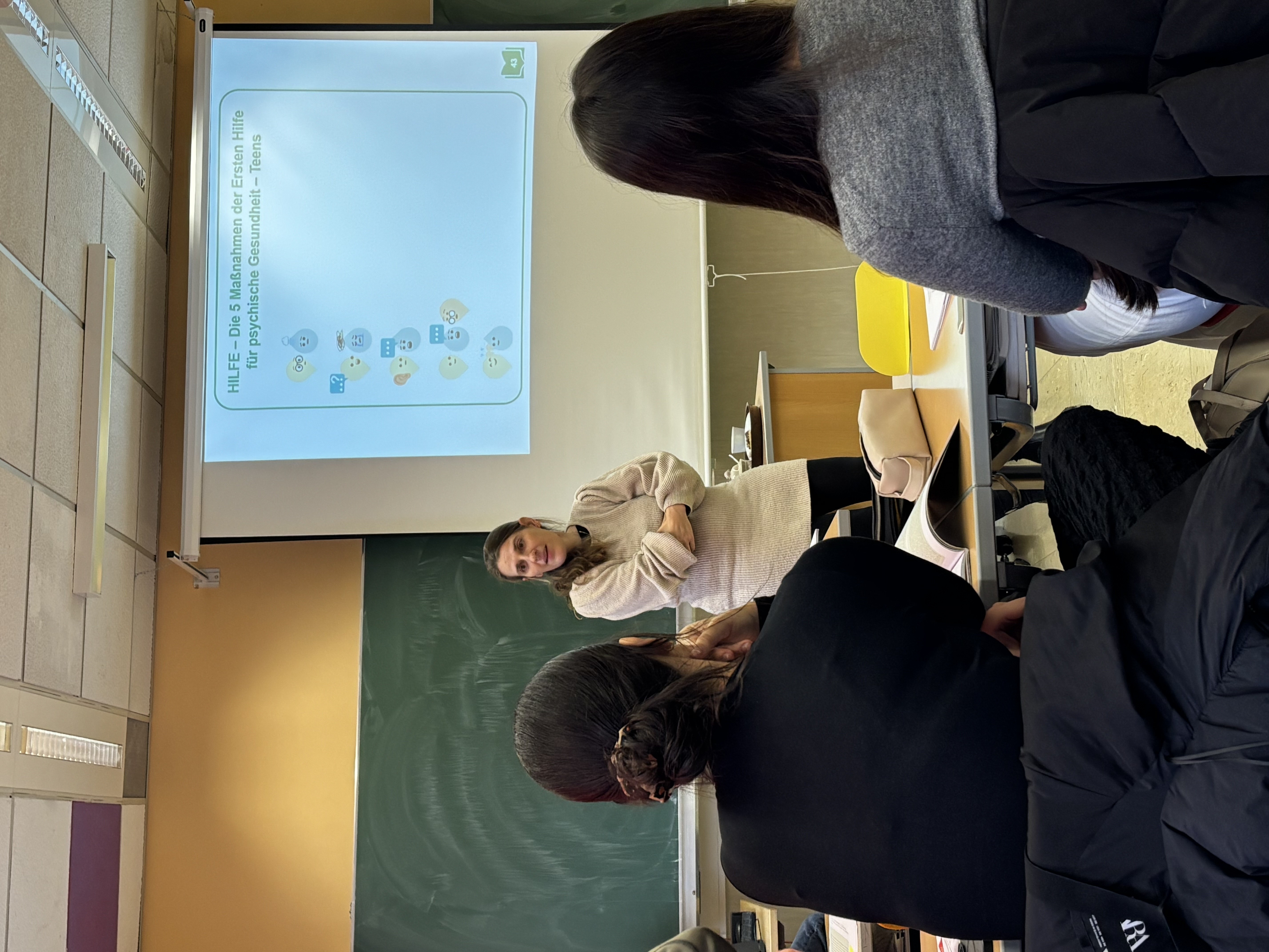 Im Rahmen eines von PRO MENTE finanzierten achtstündigen Workshops zum Thema „Erste Hilfe für die Seele“ haben wir gelernt, wie man Menschen mit psychischen Problemen unterstützen kann. Dabei wurde besonders darauf eingegangen, Warnsignale zu erkennen, die darauf hinweisen, dass jemand Hilfe benötigt, und wie man richtig reagiert. Außerdem haben wir uns mit verschiedenen psychischen Erkrankungen auseinandergesetzt und mehr über deren Symptome sowie mögliche Auswirkungen im Alltag erfahren. Ein wichtiger Teil des Kurses war, zuzuhören.