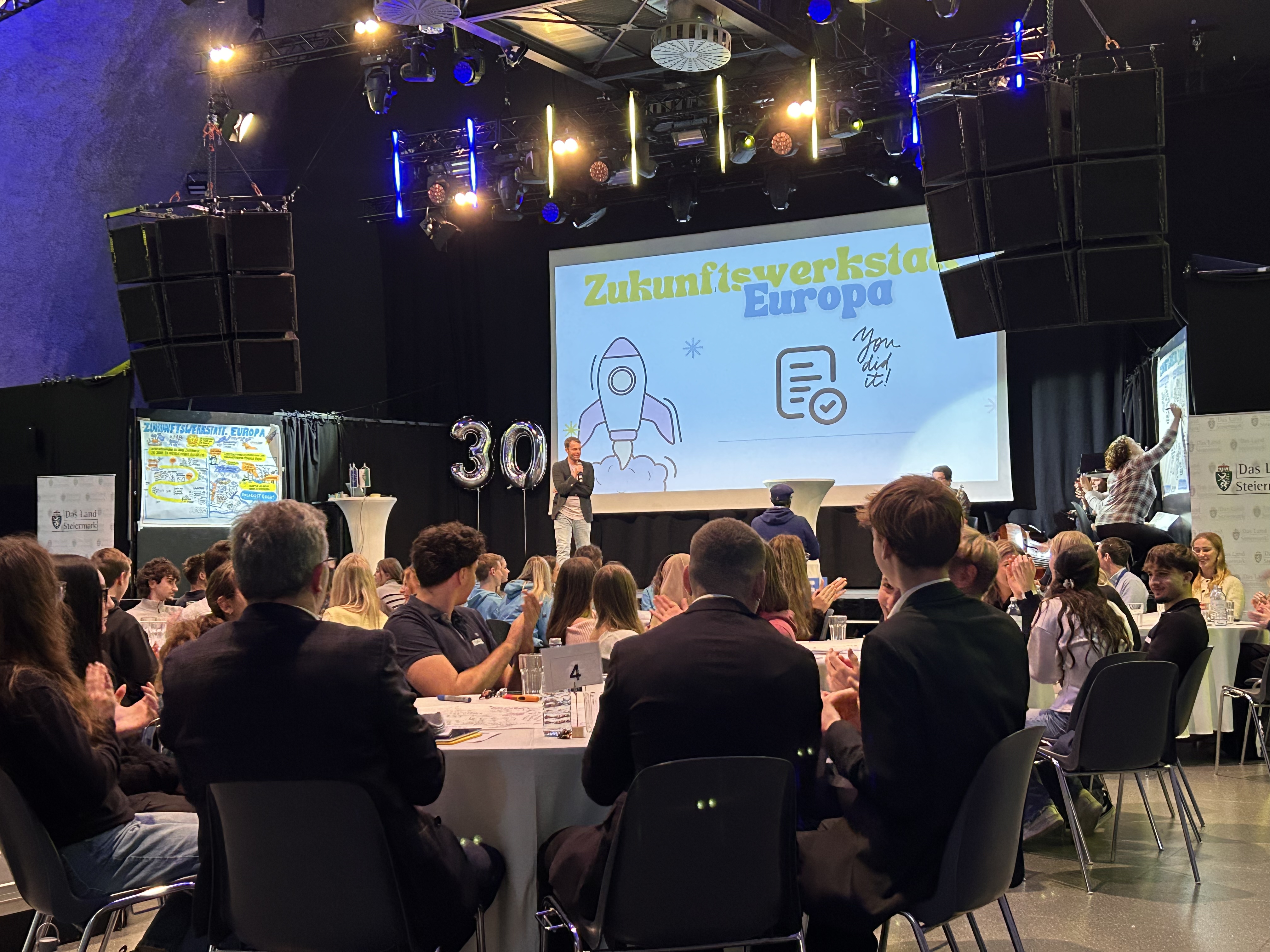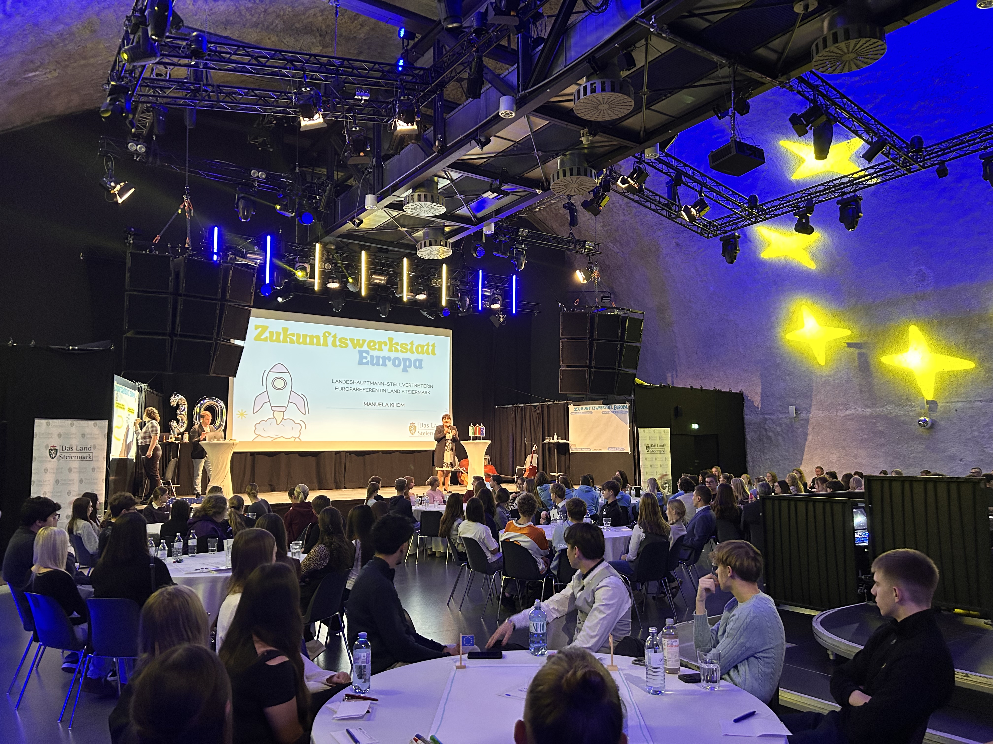 Ganz nach dem Motto "After all, democracy is not a spectator sport" nahmen wir am 19.11.2025 anlässlich des 30-Jahr-Jubiläums des österreichischen EU-Beitritts mit unseren EU-Junior-Botschafterinnen Lisa, Nesli, Denisa und Alexandra an der „Zukunftswerkstatt Europa“ in Graz teil. Bei dieser vom Europareferat des Landes Steiermark organisierten Veranstaltung konnten sich unsere Junior-Botschafterinnen mit Landeshauptmann-Stellvertreterin Manuela Khom sowie Expertinnen und Experten aus unterschiedlichen Fachbereichen austauschen. Mit ihren Ideen, Fragen und Impulsen leisteten sie einen wertvollen Beitrag zur Weiterentwicklung der Europastrategie des Landes Steiermark.