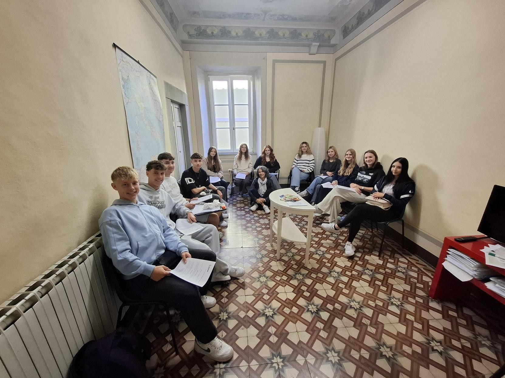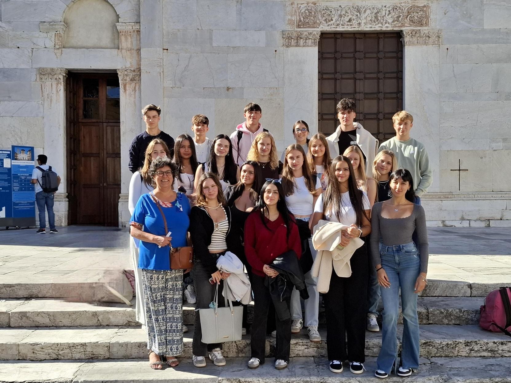 Am Nachmittag gab es diverse Aktivitäten, wie eine Führung durch Lucca, einen Besuch in Pisa und einen Auflug nach Florenz. Für die restlichen 10 Schülerinnen und Schüler ging es Dank des Erasmus-Programmes in eine öffentliche italienische Schule und sie lebten jeweils „alleine“ bei den Eltern ihrer italienischen Mitschüler. Die Erasmus-Teilnehmer hatten dadurch die Möglichkeit, nicht nur vormittags an der Schule das Leben italienischer Schülerinnen und Schüler kennenzulernen, sondern auch das Leben zuhause - dabei war es ihnen möglich, ihre Sprachkenntnisse zu vertiefen und zu erweitern. Auch die Erasmus-Gruppe konnte von einem umfangreichen Programm profitieren, das jedoch gemeinsam mit den italienischen Schülerinnen und Schülern umgesetzt wurde: Neben der Teilnahme am Unterricht und der täglichen Ausarbeitung von Arbeitsaufträgen besuchten die Lernenden Pisa sowie Florenz und konnten gemeinsam Lucca entdecken.
